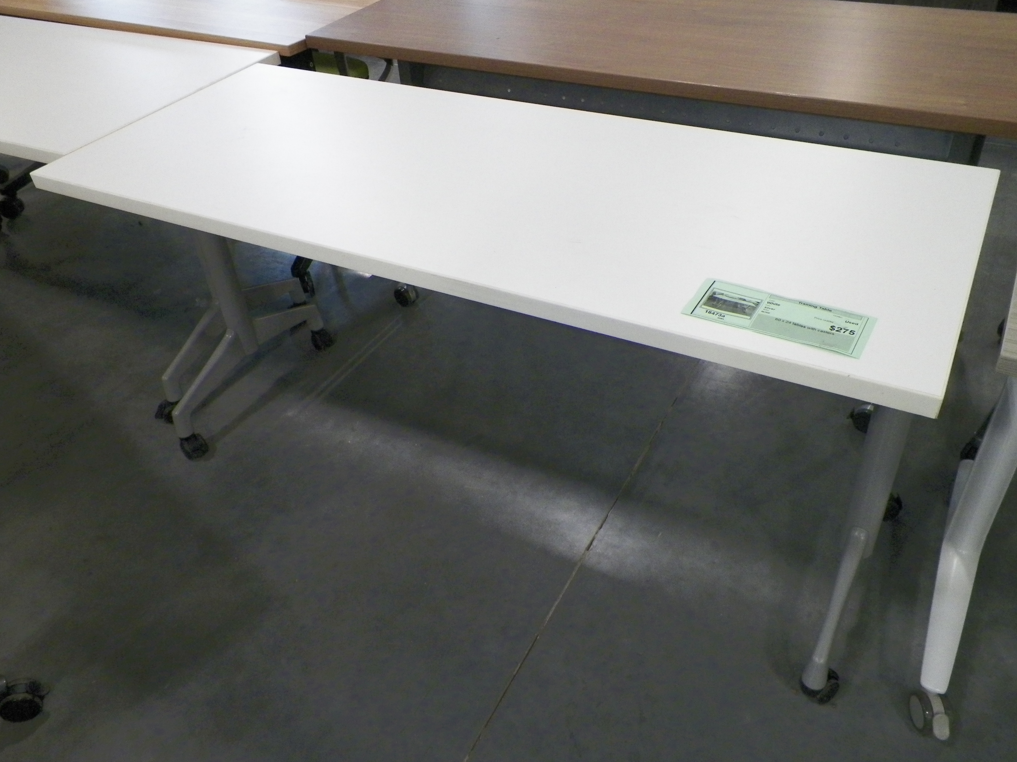 60x29 mobile training table, white top with gray. Legs FOLD for easy storage.