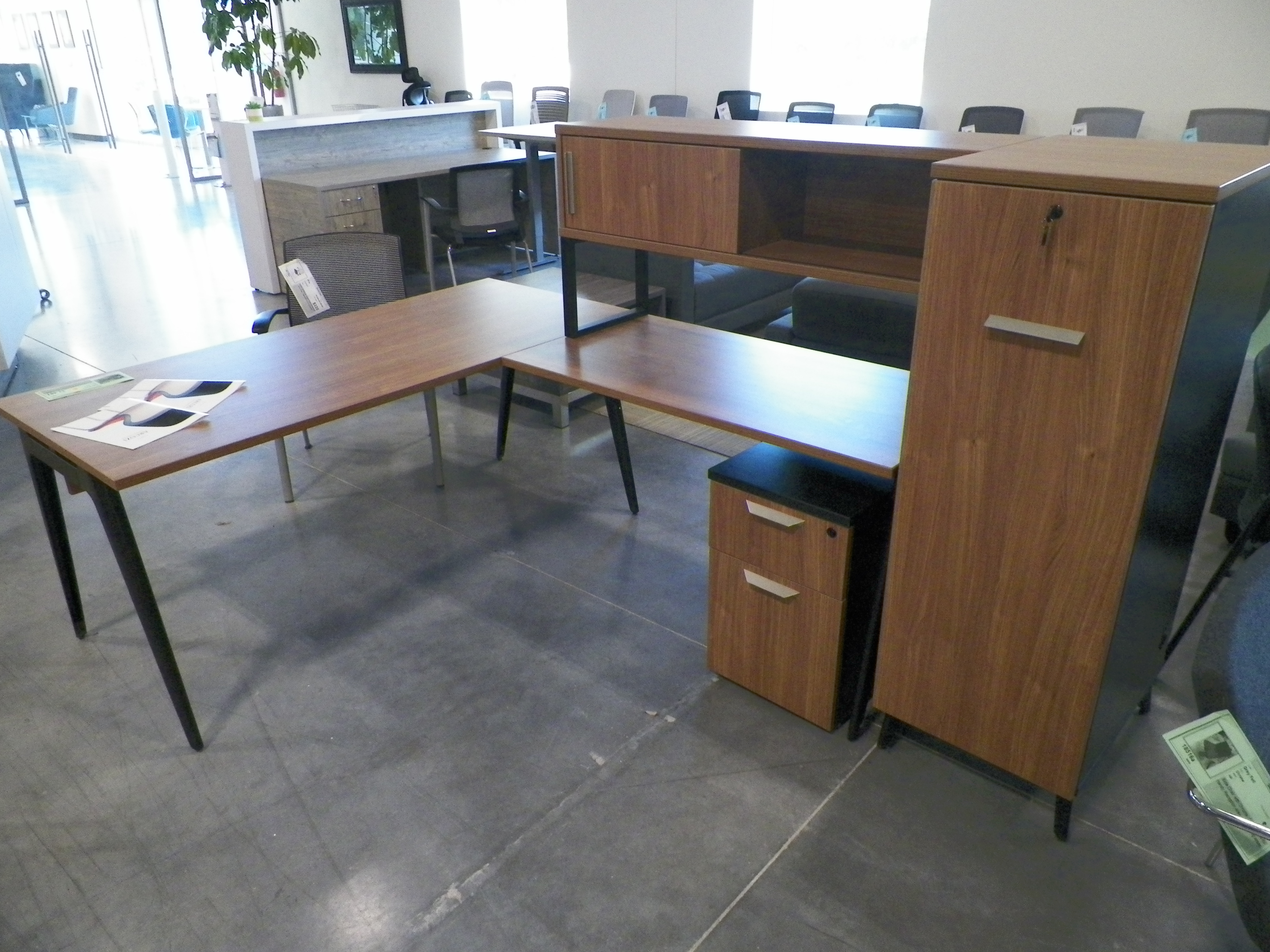 (1) mobile box/box/file storage pedestal and (1) 2-drawer lateral file. Walnut-Heights finish. CLOSEOUT.