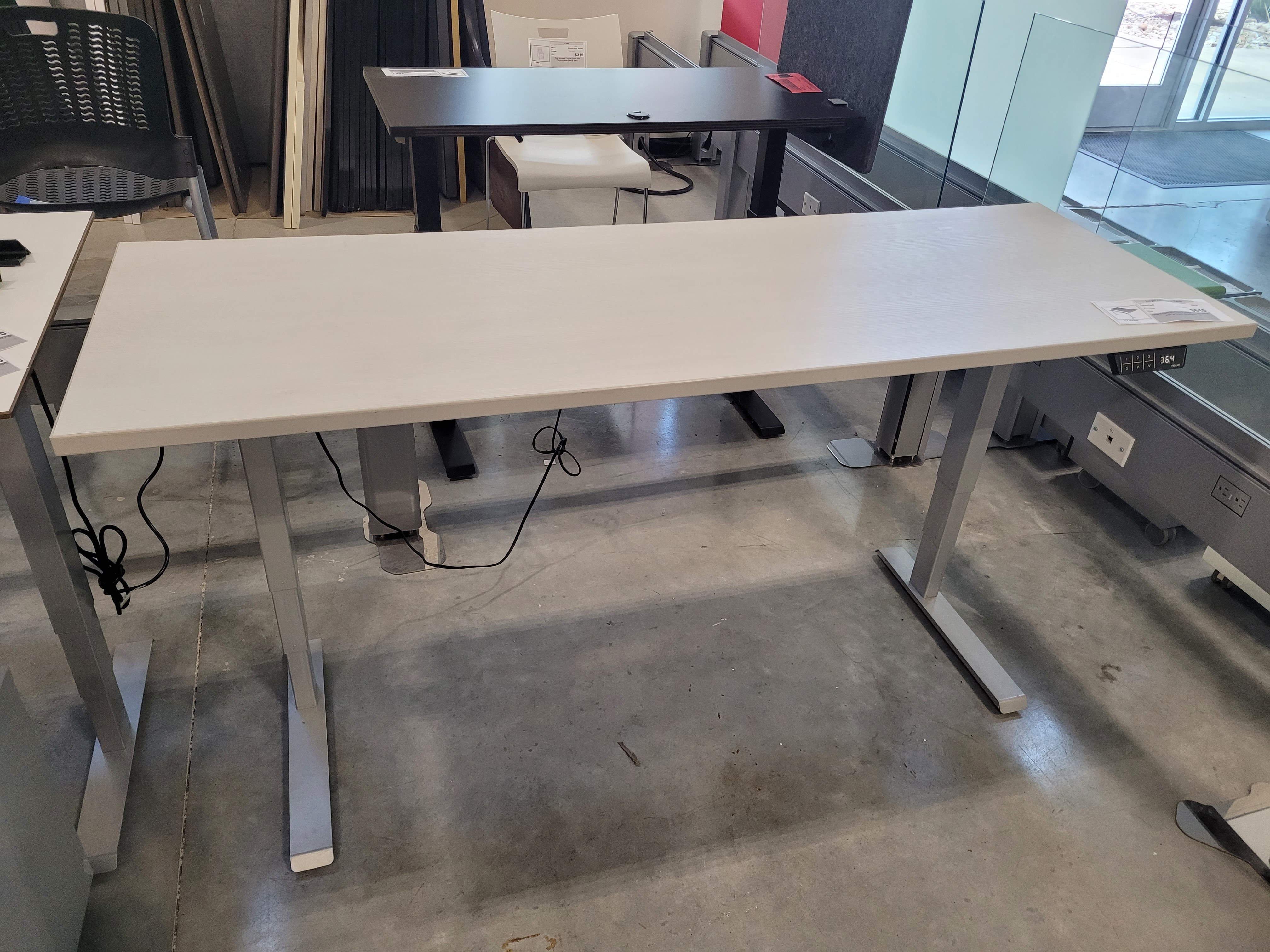 New Friant 2-stage Electric height Adjustable base (silver shown) with used 24"X71"top