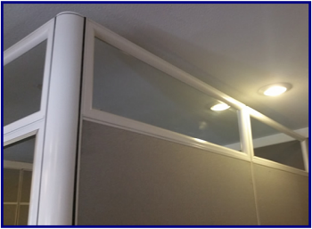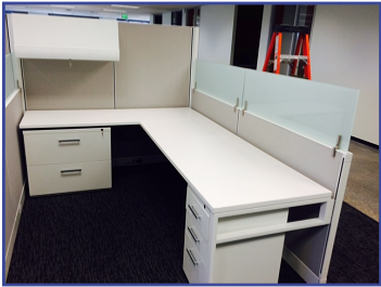 TOPS Refurbished Cubicle Inventory Innertone fabric, Medium tone trim, glass toppers added, Herman Miller AO2.